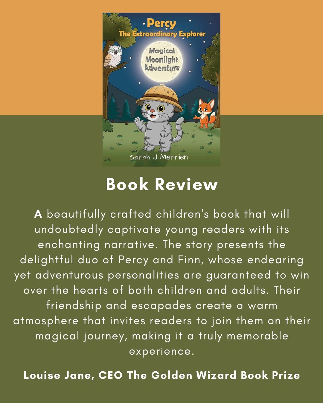 Have you ever wondered what your cat gets up to at night-time? Meet Percy - not just any cat, but an extraordinary explorer with a twinkle in his eye and a sense of adventure that comes alive under the stars. Join Percy and his best friend Finn as they set off to the whimsical and mysterious Twinkleberry Forest. Who knows what they'll find on this magical moonlight adventure?